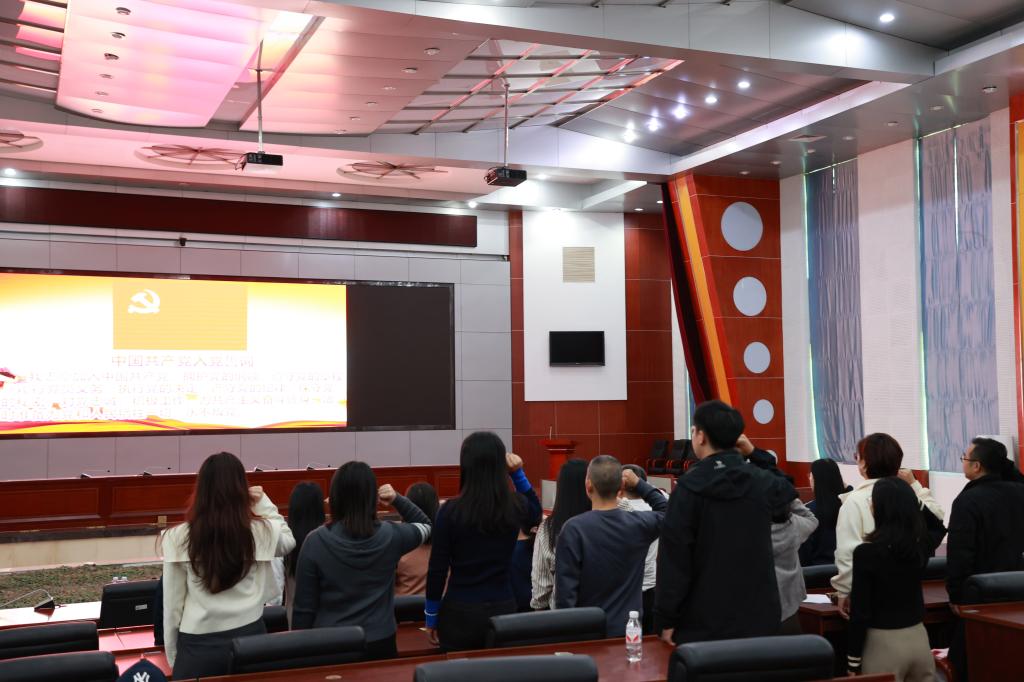 随后,李育芳主持主题党日活动,杨丹带领大家重温入党誓词,公共管理系教工党支部书记周春霞带领全体党员深入学习了习近平总书记在全国教育大会上的重要讲话精神。全体党员面向党旗庄严宣誓,围绕讲话精神结合自身工作实际展开了讨论。