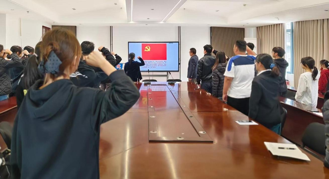 仪式在庄严的《国际歌》中拉开序幕。公司党委副书记、纪委书记曾艳芳宣读新发展的预备党员名单。由党委书记李育芳同志领誓,全体预备党员举起右拳,面向鲜红的党旗进行庄严的入党宣誓。