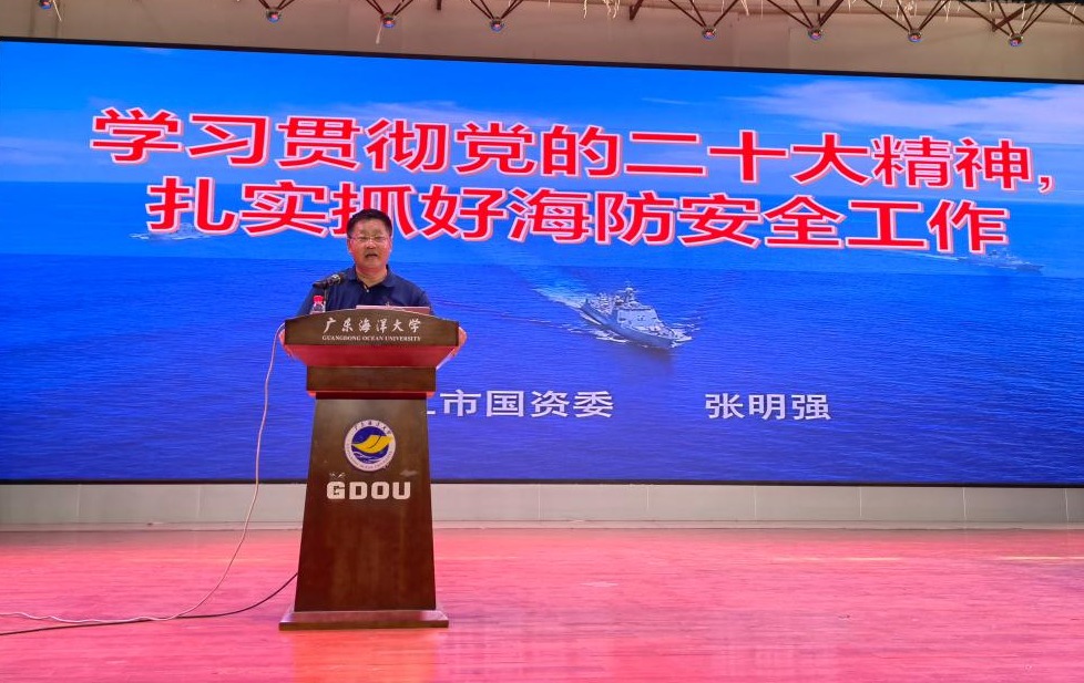 5月24日下午,广东沿海经济带发展研究院及太阳成集团tyc151cc共同举办的“沿海经略大讲堂”第四场报告在湖光校区东区小礼堂进行。湛江市国资委副主任、二级调研员张明强应邀作“学习贯彻党的二十大精神,扎实抓好海防安全工作”的专题报告。广东沿海经济带发展研究院副经理张玉强主持会议,管理公司党委书记李育芳、副书记曾艳芳和相关公司师生等200余人参与报告会。