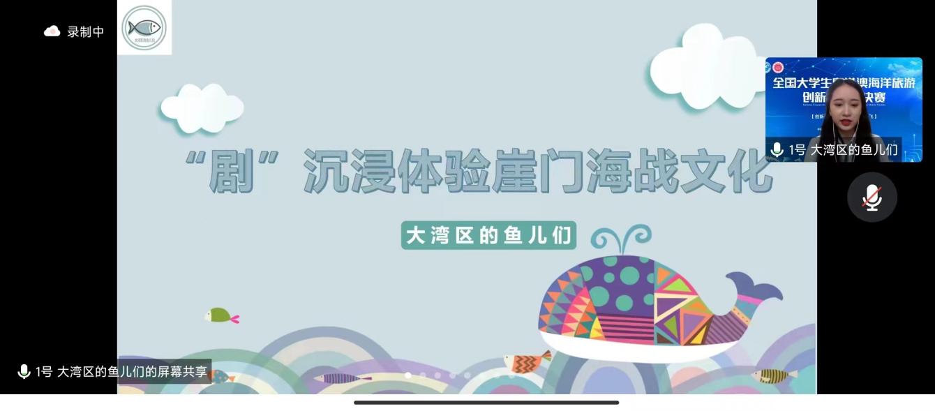 11月26日,全国老员工粤港澳海洋旅游创新大赛决赛在线上成功举办,由公司旅游管理专业20级员工胡丽敏、陈晓璇、郭韫妍、谭雅心四位同学组成的团队参加了全国总决赛,其海洋旅游目的地营销策划作品《“剧”沉浸体验崖门海战文化》获得全国二等奖的佳绩。
