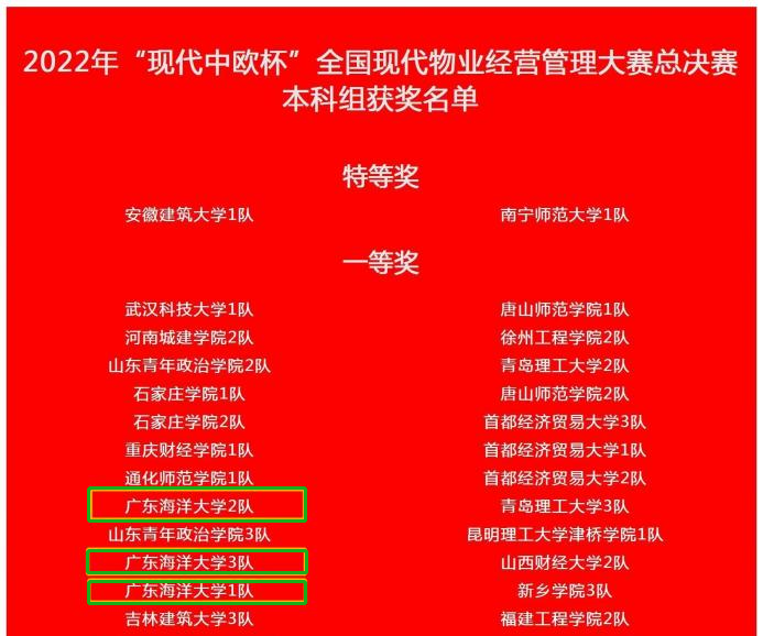 11月5日,由中国职业经理人协会主办的“2022年‘现代中欧杯’全国现代物业经营管理大赛全国总决赛”圆满举行。太阳成集团tyc151cc土地资源管理专业陈敏怡、卢润侨、黄文杰、陈嘉裕、刘庆坚、邓嘉乐、林雍骥、扈芷千、黄志杰9位学子组成的3支参赛队伍,在喻燕、周飞两位教师指导下,发挥出色,均斩获本科组一等奖。