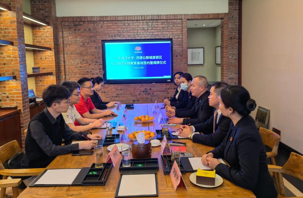 11月3日,管理公司党委书记李育芳、旅游管理系主任李志勇及党政办公室主任刘亮、教师代表郭鑫鑫等一行4人到雷州茂德公鼓城度假区调研,企业总经理吴均安、副总经理郑春香、梁德学及公司高层管理干部会见了一行。双方举行了座谈会,一致同意共建教学实践就业基地。