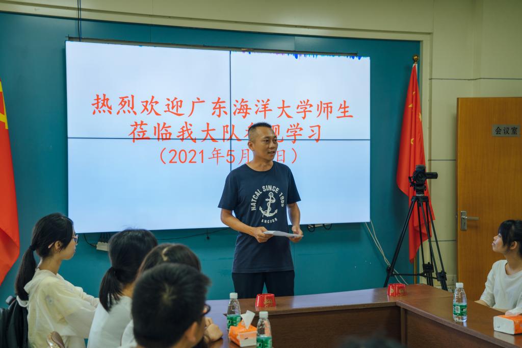师生一行首先到广东省渔政总队东海大队进行交流学习。渔政大队执法人员简单介绍了休渔期前的执法宣传和工作准备,从联合执法、渔船安全监管、渔港监督管理和消防演练等方面为员工详细介绍了伏季休渔期间的渔业渔港管理工作,并表示硇洲岛休渔期间在“三无”船舶管理方面面临着新的工作挑战。围绕上述内容,东海大队执法人员与员工进行了深入讨论和交流。