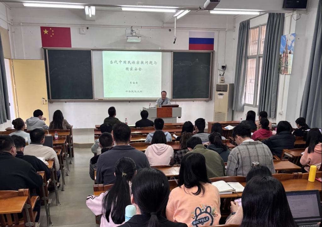 李俊清教授以“当代中国民族宗教问题与国家安全”为题,指出宗教与民族问题是我们建设中国特色社会主义,实现中华民族的伟大复兴必须处理好的重大问题。并结合中国宗教与民族的现状,从政治学与公共管理的角度与同学们探讨了宗教、民族、国家安全等相关问题。