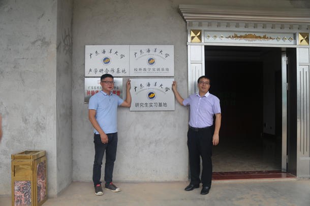 考察的第二站是高州市新芝泰农业科技有限公司,该公司朱卫培总经理热情地接待了调研团。在朱总经理的陪同下,师生考察了该公司的种植区、养殖区、食农教育区、农产品加工区、农事体验区和休闲娱乐区,其中,重点考察了该公司的有机番石榴种植示范基地、有机火龙果种植示范基地、智慧种植基地,以及珠茂火龙果庄园产业扶贫项目,该项目采用“公司+合作社+农户”的运作模式,在对口扶贫单位资金的支持下,通过发展龙头企业来壮大产业实现江口村整村脱贫。调研期间,校企双方还召开了座谈会,商讨了下一步深入开展合作的方向和领域。座谈会结束后,双方举行建立研究生实习基地的签约仪式和挂牌仪式。