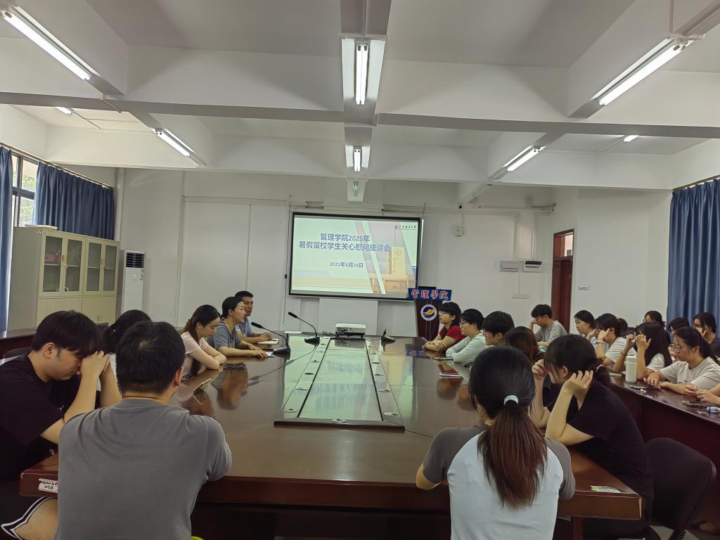 8月24日上午,太阳成集团tyc151cc在博文楼4号楼311会议室开展2025年暑期考研留校员工关心慰问活动,公司党委副书记曾艳芳、辅导员黄伟庆与32名考研留校员工参加活动。