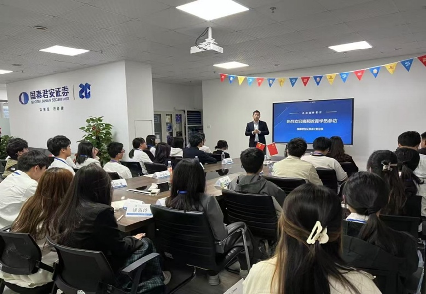 我还有幸参与了国泰君安证券的参访日活动。这一天不仅让我近距离接触了金融行业的真实运作场景,更通过行业培训和小组合作的双重体验,对金融市场有了深刻认知。培训活动中前辈们不仅带来了行业前沿视野,更为我们初涉商科的老员工指明了破局生长的方向,要把握机会,多参与行业参访、学术交流,还要拥有跨界思维,成为复合型人才。